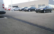 • 地面停車場選用線性成品排水溝